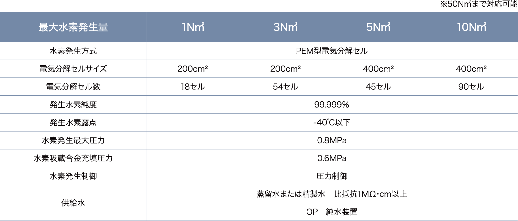 高純度な水素を、PEM型水電解装置を用いて高効率に発生させます。