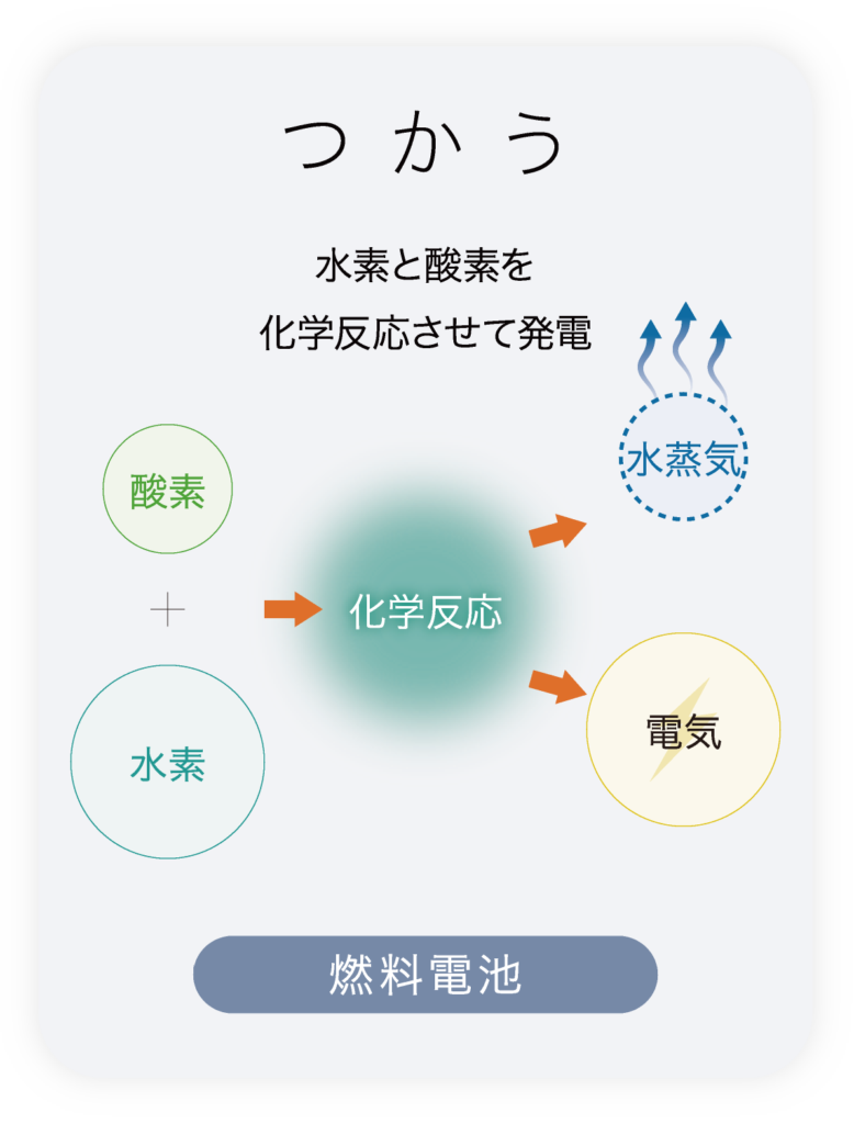 排熱を出さない燃料電池を用いて、需要に応じて水素を電力に変換することができます。