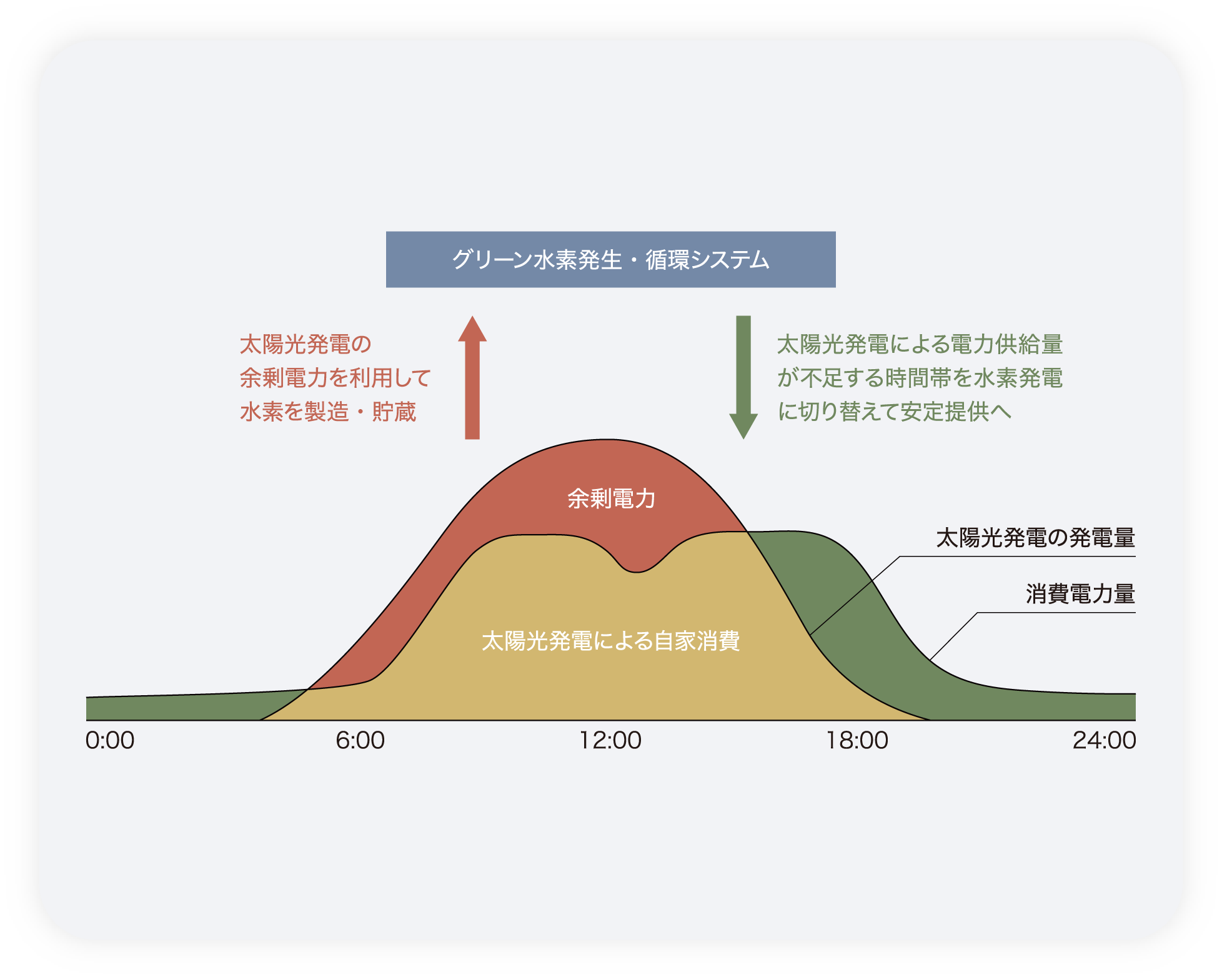 日中の余剰電力で水素を製造・貯蔵して夜間は水素発電